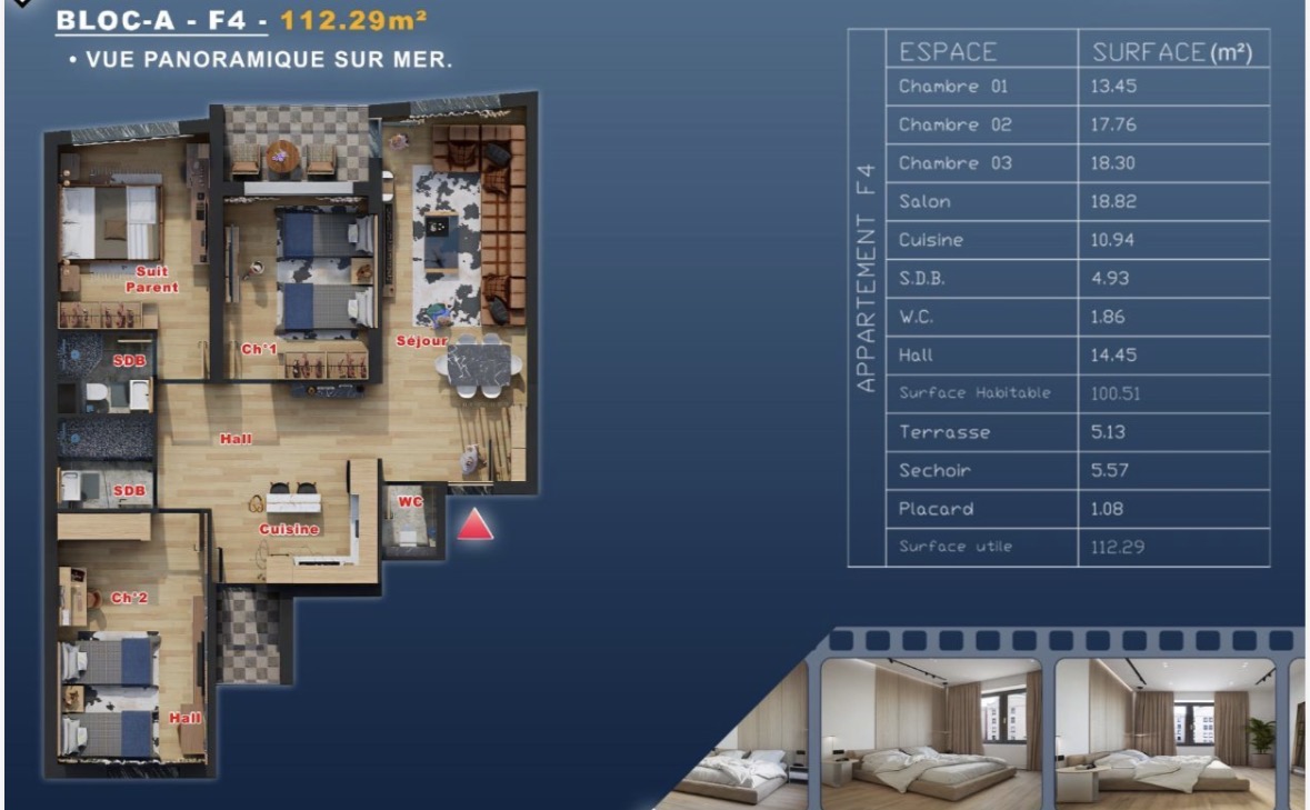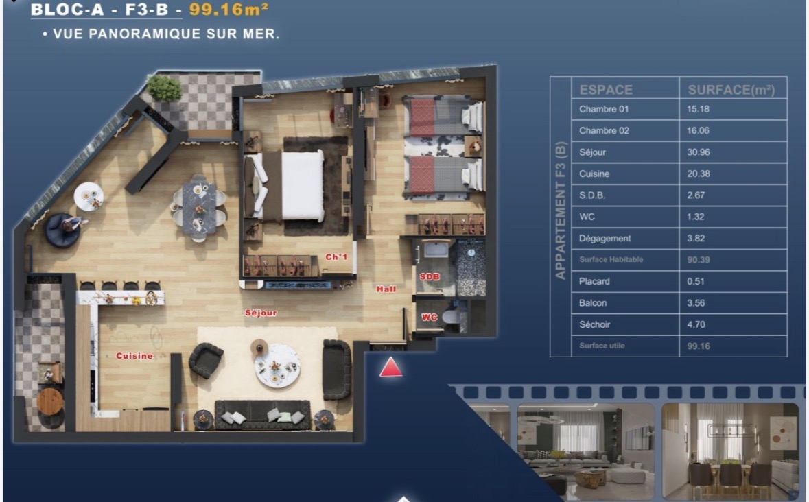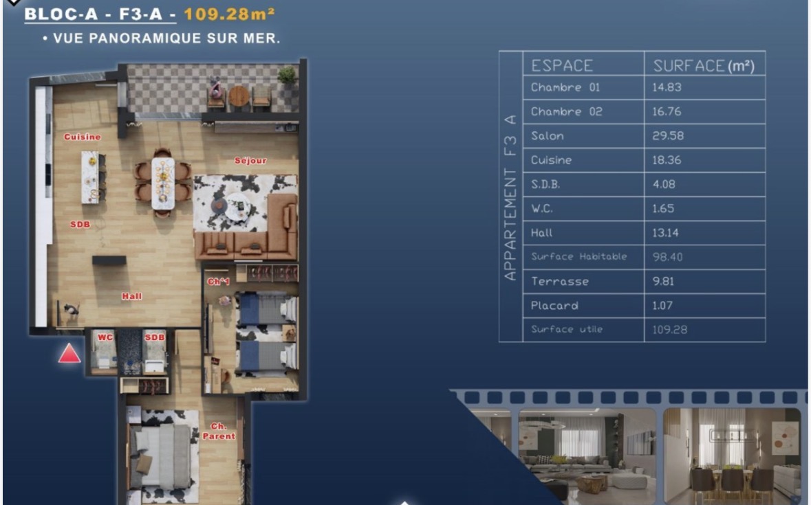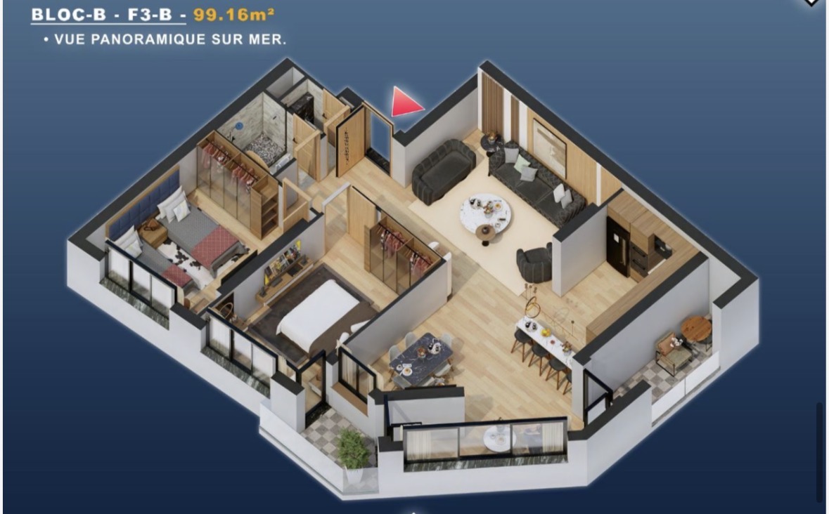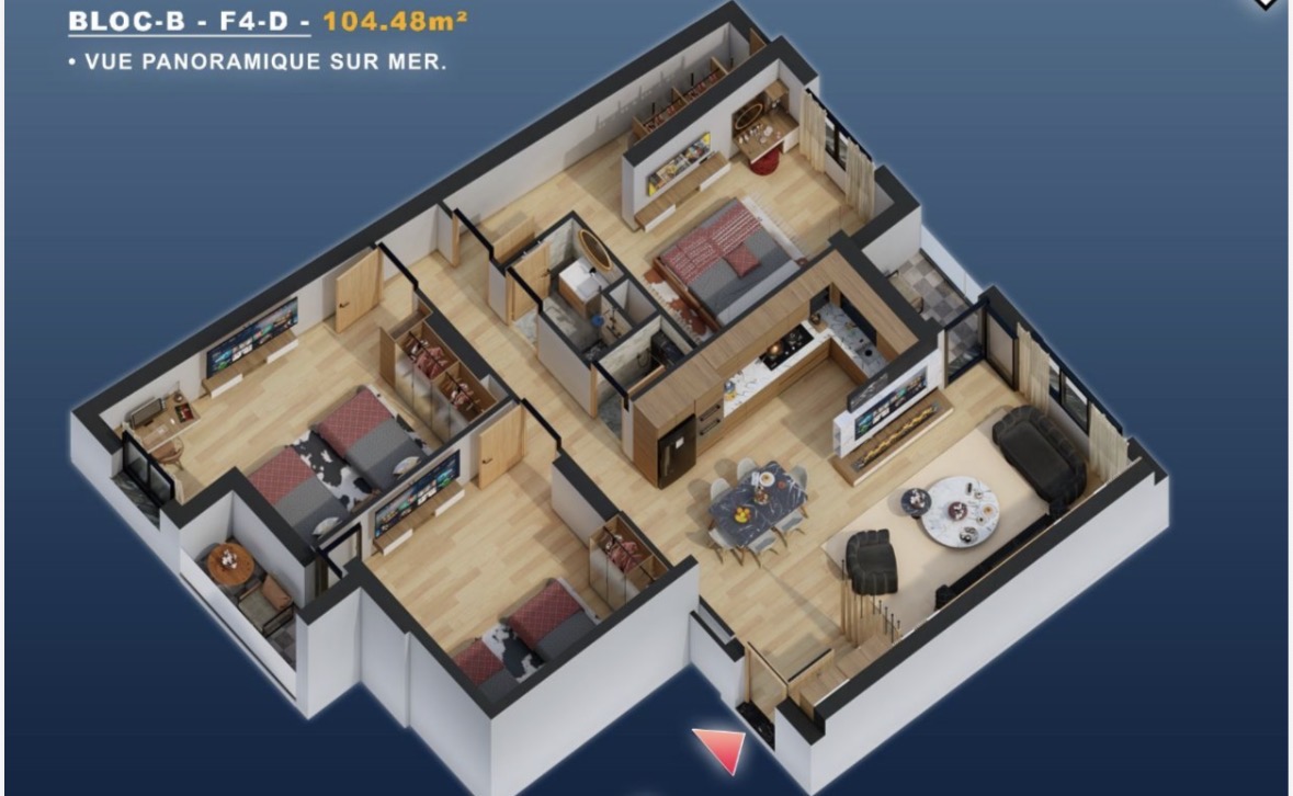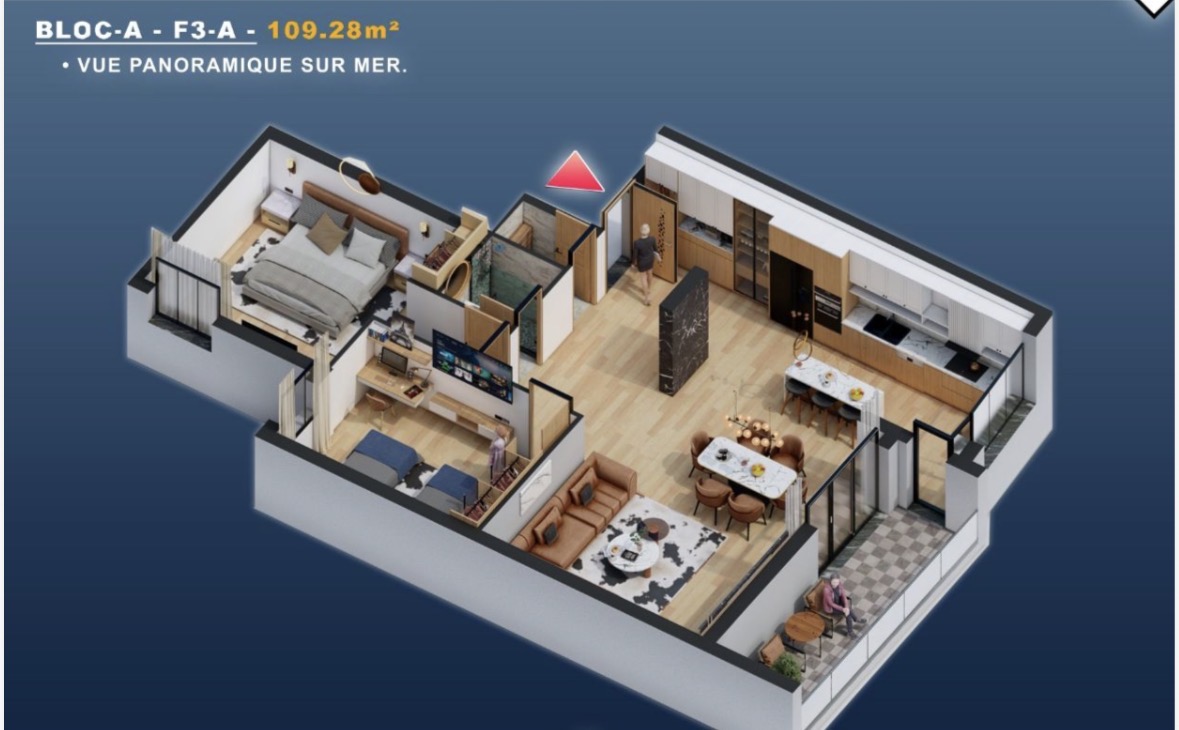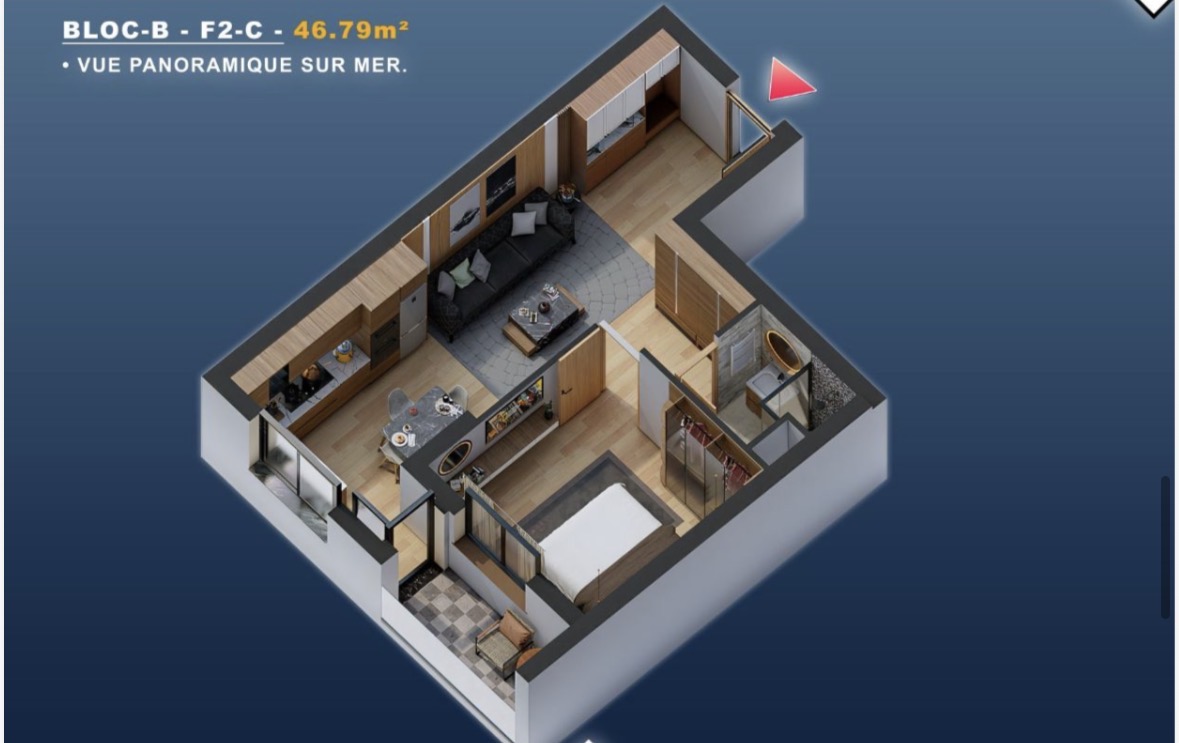 La Résidence Palais Nova se compose de deux blocs ouverts sur la mer, offrant des appartements avec terrasses et un parking en sous-sol. Elle garantit une sécurité optimale grâce au gardiennage 24/7, à la vidéosurveillance, aux portes blindées et à un hall protégé par digicode et vidéophone. Chaque logement bénéficie d’un haut niveau de confort avec cuisine moderne, suite parentale, salles de bain équipées, chauffage central et menuiserie aluminium à double vitrage. La résidence dispose également d’installations essentielles comme une bâche à eau, une chaudière individuelle, un réseau anti-incendie, ainsi qu’une centrale parabole. Les appartements sont précâblés pour l’internet haut débit et profitent de vues panoramiques sur la mer. Le hall décoré par un designer, les deux ascenseurs avec accès direct au parking et la gestion assurée par le promoteur complètent ce cadre de vie moderne et premium.